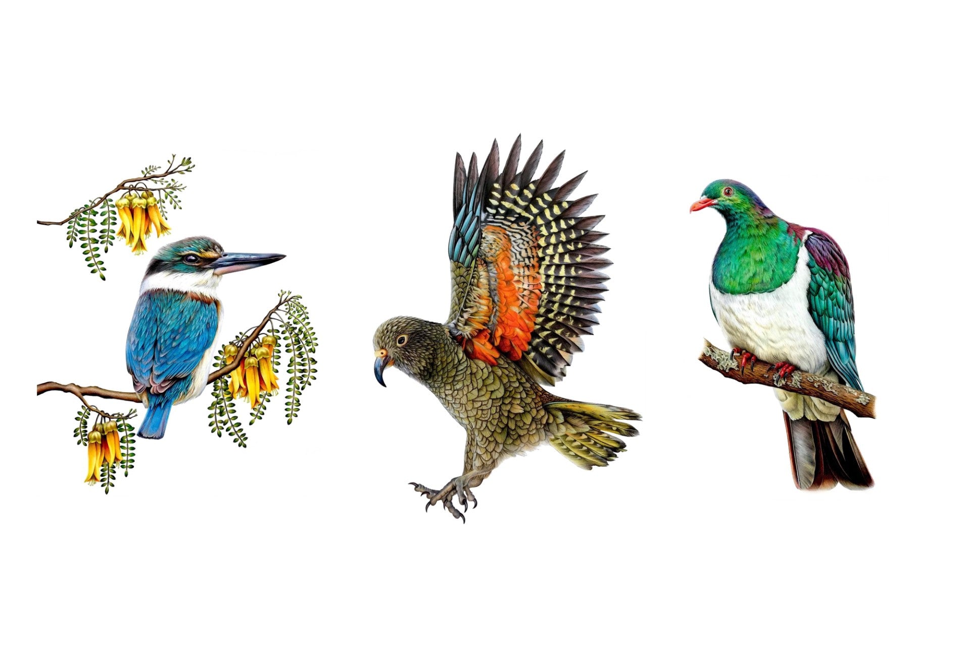 A collection of Coloured Pencil New Zealand Native Bird fine art prints.